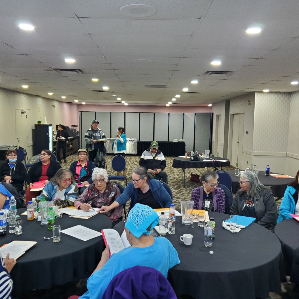 Day 2 – Review of Saulteaux/English dictionary -Traditional Knowledge Keeper’s (TKK) went into three (3) groups led by a Language Keeper who knew how to read and write Saulteaux. The Saulteaux/English dictionary was divided equally into three (3) sections. One section was given to each group to review Nakawe words for proper word and spelling.